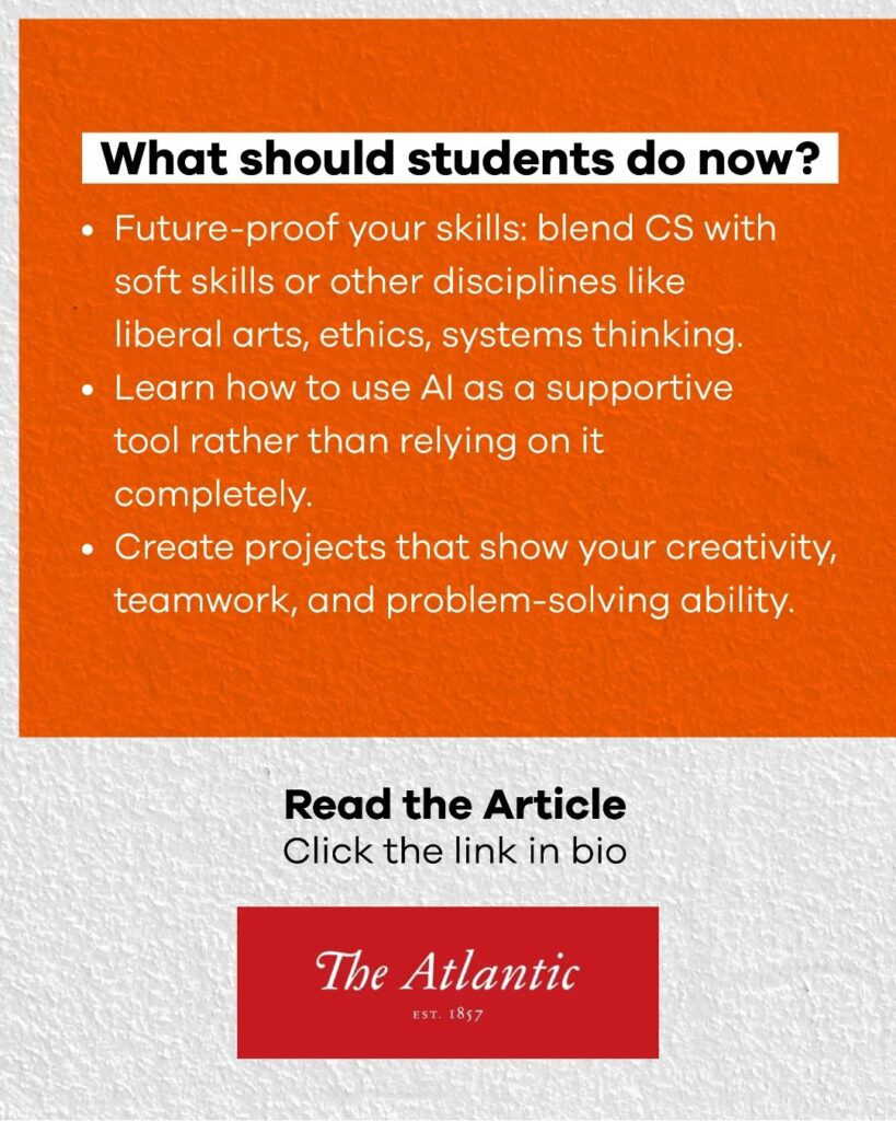 🔹 Blend CS with soft skills. Pairing technical knowledge with communication, empathy, and systems thinking makes students more adaptable and future-ready.